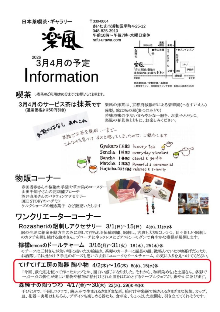 当ブログ主の陶芸作品の展示・販売会in浦和・楽風 開催のご案内【2026年4月2日(木)〜】